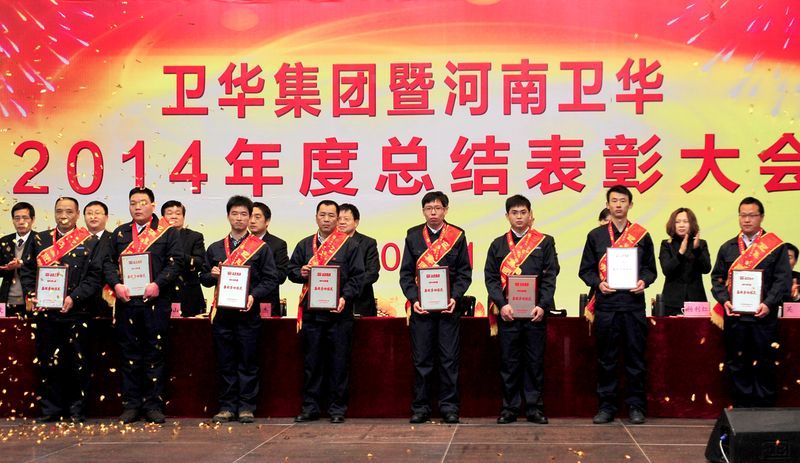 1月30日上午,卫华集团2014年度总结表彰大会在集团多功能厅隆重举行。集团党委书记韩宪保在大会上强调,要在总结成绩的同时,认清形势,查找不足, 明确自己肩上的责任,2015年全体员工要以敢为人先的勇气,百折不挠的士气,永不退缩的志气,力挽狂澜的豪气,竞相创新的锐气,凝心聚力,团结拼搏,狠 抓落实,推动卫华集团持续健康发展。